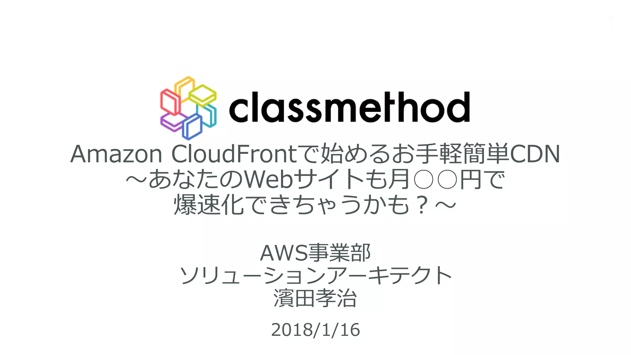 Network)は、Webサ イトの速度向上に非常に有用な手段だ • Amazon CloudFrontを利用することで、静的コン テンツだけではなく、動的コンテンツもキャッシュ 対象とすることができる • クラスメソッドメンバーズに入ると、CloudFront がむちゃくちゃお安く使えますよ!