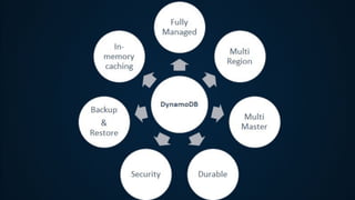 Amazon DynamoDB is a fully managed NoSQL database service designed for fast performance and easy scalability, suitable for applications with fluctuating traffic. It utilizes concepts like sharding and partitioning to distribute data effectively, ensuring efficient query and storage capabilities. The document also details creating and managing a DynamoDB table, highlighting its benefits for mobile and web applications while noting limitations regarding complex queries and transactions.