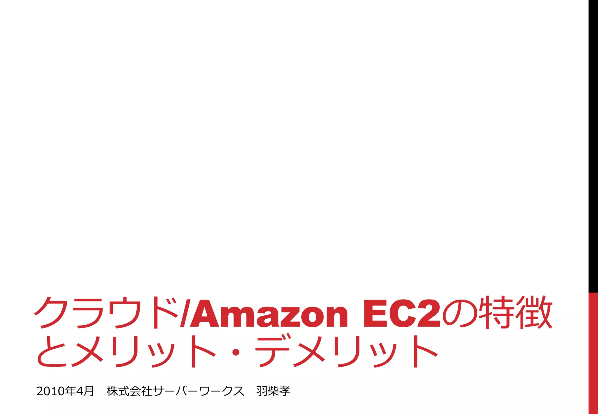クラウド/Amazon EC2の特徴 とメリット・デメリット 2010年4月 株式会社サーバーワークス