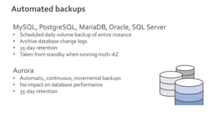 Amazon Relational Database Service (or Amazon RDS) is a distributed relational database service by Amazon