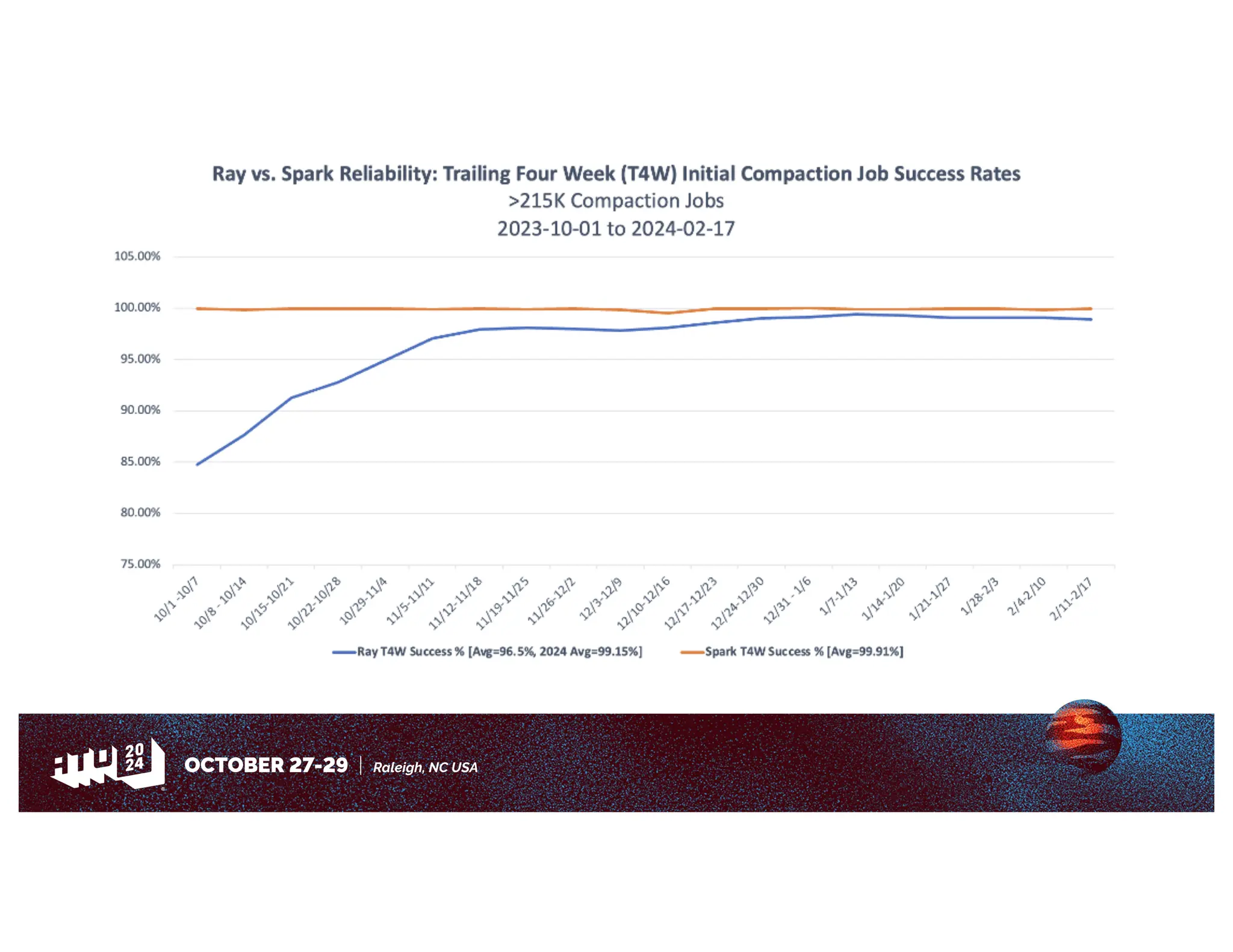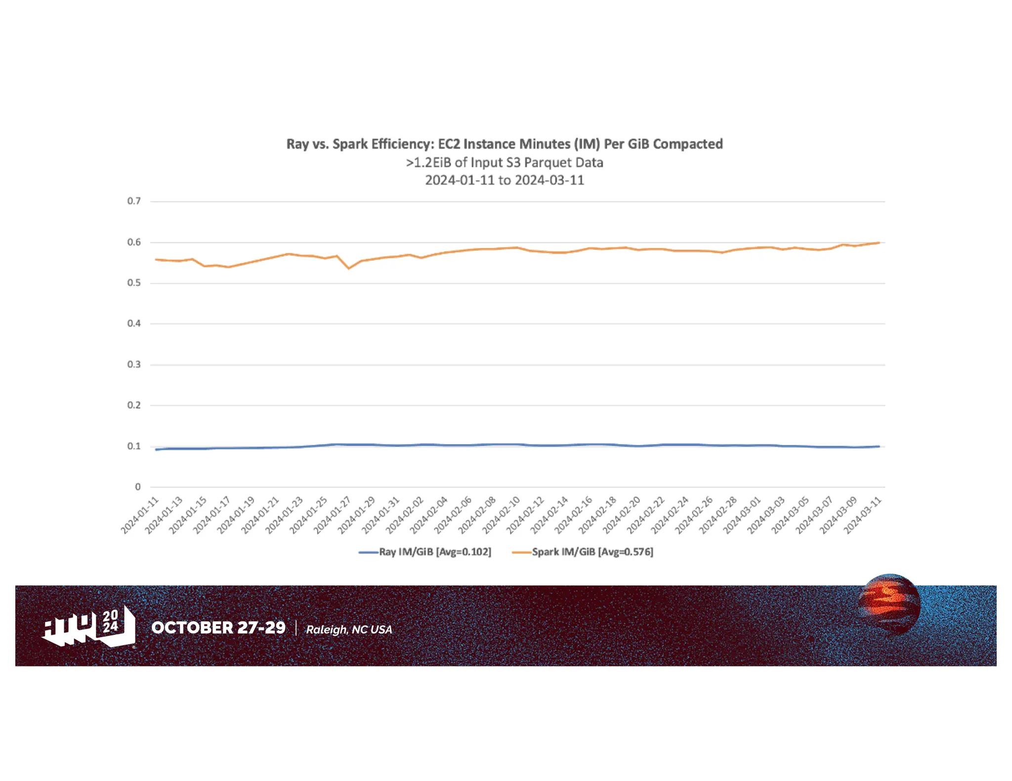 Amazon has migrated its data processing from Spark to Ray to improve efficiency and scalability of its bi pipelines. The transition involves moving compaction processes and adopting new technologies while addressing challenges such as cost, compatibility, and operational sustainability. Future work includes enhancing Apache Iceberg integration and optimizing performance across data processing workflows.