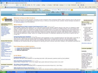 The document discusses various web services provided by Amazon Web Services (AWS) including: