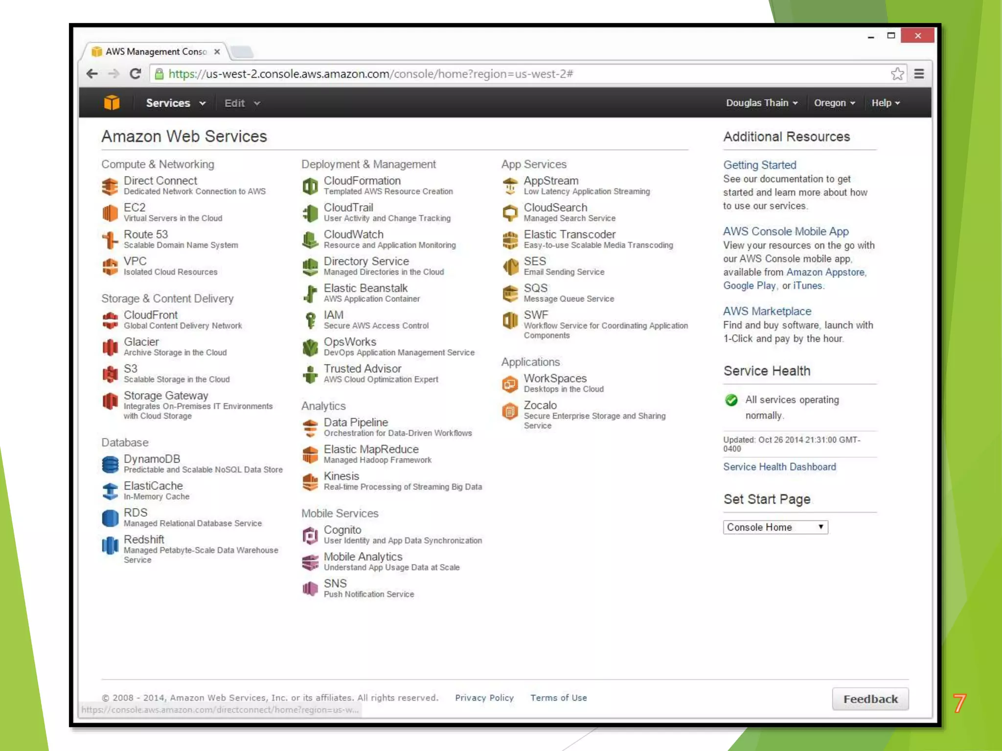 Amazon Web Services (AWS) provides cloud computing infrastructure services including Elastic Compute Cloud (EC2) for computing power, Simple Storage Service (S3) for file storage, and Simple Queue Service (SQS) for messaging. EC2 allows users to launch virtual servers and pay based on usage. S3 provides unlimited storage and retrieval of files up to 5GB each. SQS is a distributed queue system that supports programmatic message passing between applications. AWS offers scalability, flexibility and reliability at low costs without long term commitments.