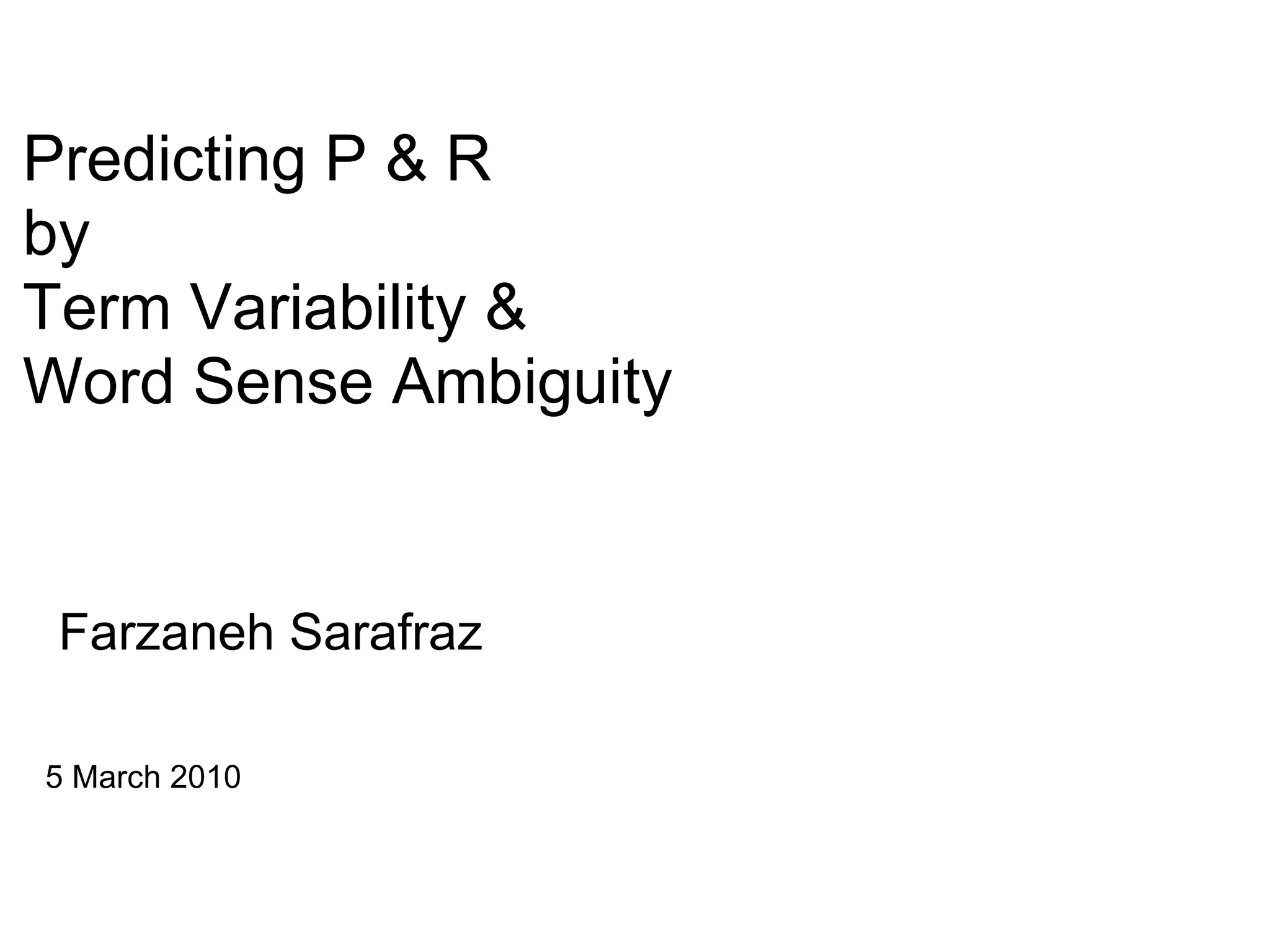 This document discusses predicting precision and recall in information extraction. It examines term variability and word sense ambiguity. Three key measures are discussed: term variability measure, word entropy, and class entropy. Graphs show correlations between precision and class confusion, and recall and lexical variability. Specifically, precision decreases as class confusion increases, while recall decreases as lexical variability increases. The document asks for ideas on information extraction.