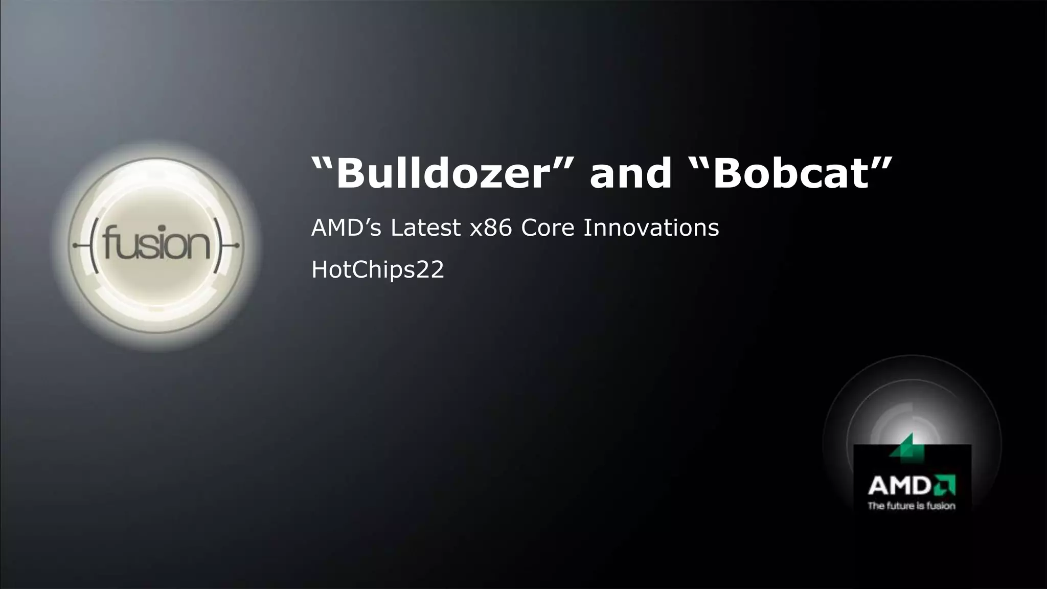 AMD is introducing two new x86 CPU cores called "Bulldozer" and "Bobcat". Bulldozer is aimed at mainstream client and server markets, featuring improved performance and scalability. It uses a shared/dedicated resource approach to increase performance per watt. Bobcat is optimized for low power markets like cloud clients. It features a smaller, more efficient design to deliver high performance while minimizing power consumption and die size.