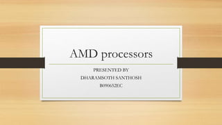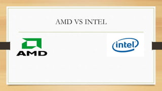 The document compares AMD and Intel processors. It finds that AMD processors are generally cheaper than Intel, with a custom-built AMD PC costing $272.92 compared to $484.90 for Intel. While Intel is better for business and research needs, AMD supports a wider range of uses including gaming, video/audio editing, and movies. AMD also offers better graphics and gaming performance due to its 3D Now! technology and runs programs like 3D Studio Max and Photoshop faster than Intel. However, older AMD processors can overheat quicker than Intel.