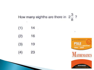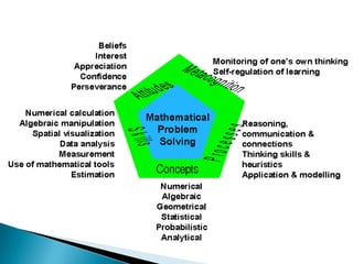The document discusses the PSLE mathematics curriculum and its emphasis on problem-solving as a key competency. It highlights concerns from parents regarding the difficulty of recent exams, particularly with the introduction of calculators. Additionally, it outlines various teaching strategies and competencies necessary for effective mathematics learning, including visualization and metacognition.