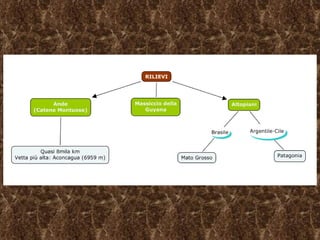 Il documento fornisce una panoramica della geografia e del clima dell'America meridionale, evidenziando le varie regioni come le Ande, la foresta amazzonica e le pampas. Vengono descritti i principali fiumi e le caratteristiche climatiche, inclusi i climi tropicali e temperati. Inoltre, si elencano i paesi dell'area, specificando che le informazioni sono fornite a scopo didattico.