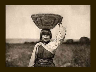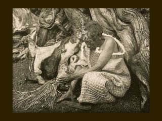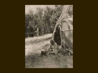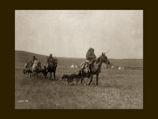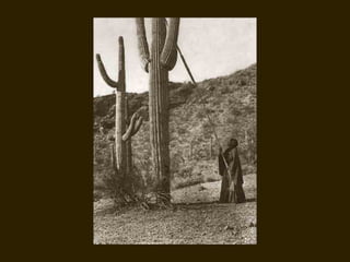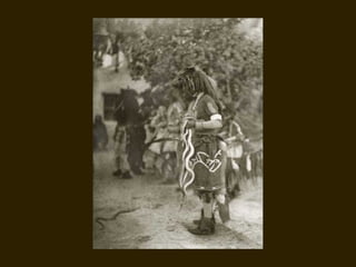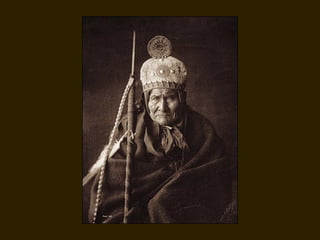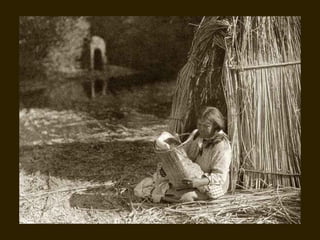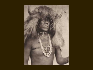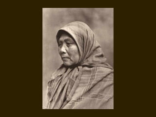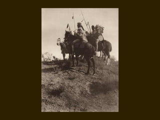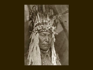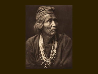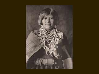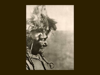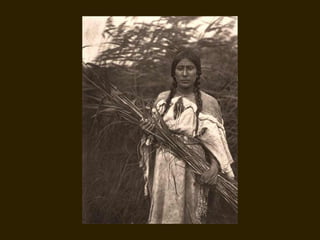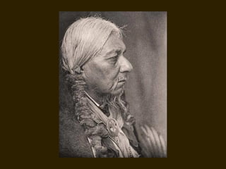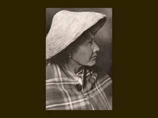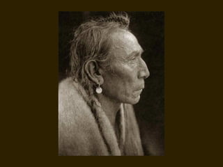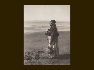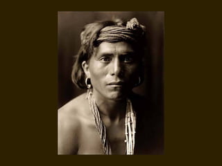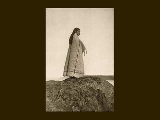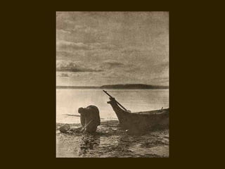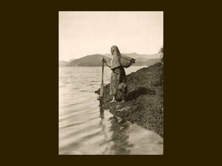 Edward S. Curtis was a photographer who dedicated his life to documenting the lives and cultures of Native American tribes in the early 20th century. He took over 40,000 photographs and recorded thousands of hours of sounds over 30 years of extensive travel. His work was published in a 20 volume set called The North American Indian. While his work brought attention to Native American cultures, some criticize that he staged scenes and encouraged tribes to perform outdated rituals. His work was both praised for its documentation but also criticized for potentially misrepresenting Native people and cultures.