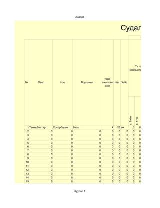 Хүснэгтэн мэдээлэл боловсруулах OpenOffice.org Speadsheet програм дээр дүнгийн хүснэгт гэх мэт сургалтад ш