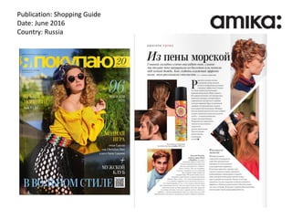 This document lists media publications and websites from Russia during June 2016, including a shopping guide magazine, two fashion and lifestyle websites (ellegirl.ru and daily.afisha.ru), a recommendations website (irecommend.ru) mentioned twice, and an Instagram account belonging to Viktoriia Lebedinskaia. All entries are in Russian and provide the date and country of the listed media.