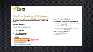 注意 • 新規でアカウントを開設してから1年間は無料枠 があります。 • 今回のハンズオンで、無料枠適応外の料金が20 円程度発生しています。 (t2.small/Amimoto利用料)