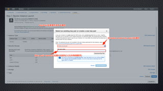 sshでサーバへログイン macユーザ 1、ターミナルを開いて、インスタンス作成時にダウンロードした鍵の所有権を変更
