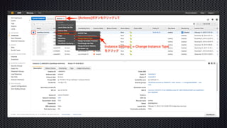 •インスタンスを止める •Change Instance Typeでインスタンスタイプを変更 •インスタンス起動