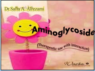 This document discusses aminoglycoside antibiotics, including their uses, side effects, and drug interactions. Some key points: