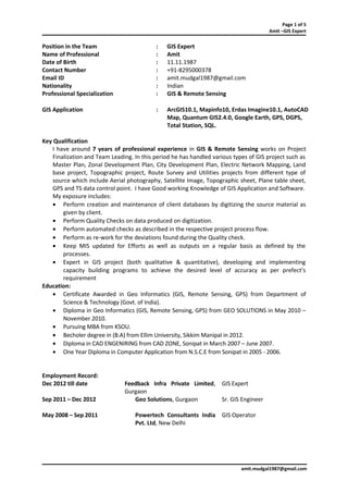Amit has over 7 years of experience as a GIS expert. He has extensive experience working on projects related to city development plans, land use mapping, and infrastructure mapping. Some of the key projects he has worked on include the preparation of tourism master plans for towns in Himachal Pradesh, land use mapping for cities in Odisha and Jharkhand, and infrastructure mapping projects for utilities companies.