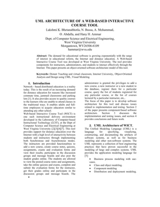 1. The document presents the UML architecture of a Web-based Interactive Course Tool developed at West Virginia University.