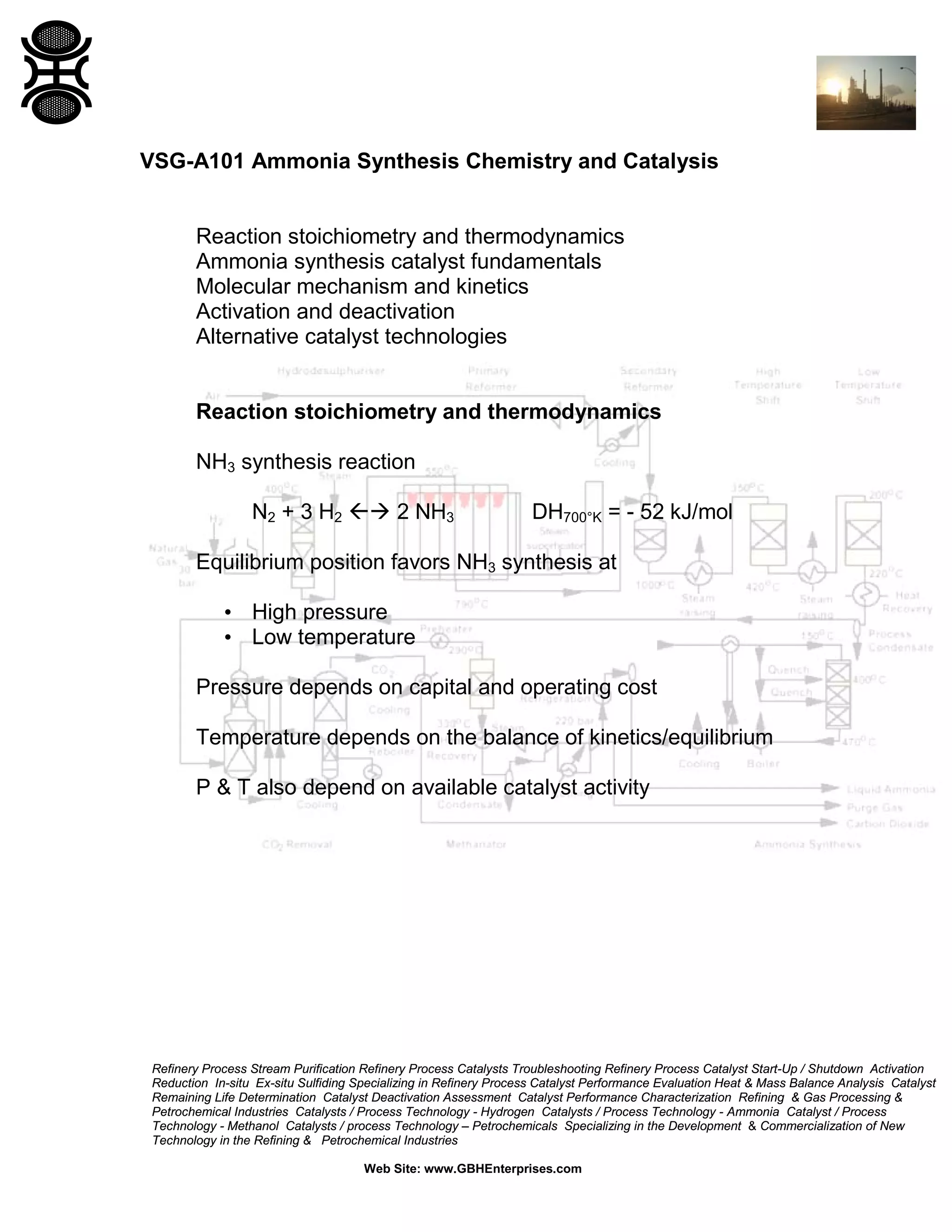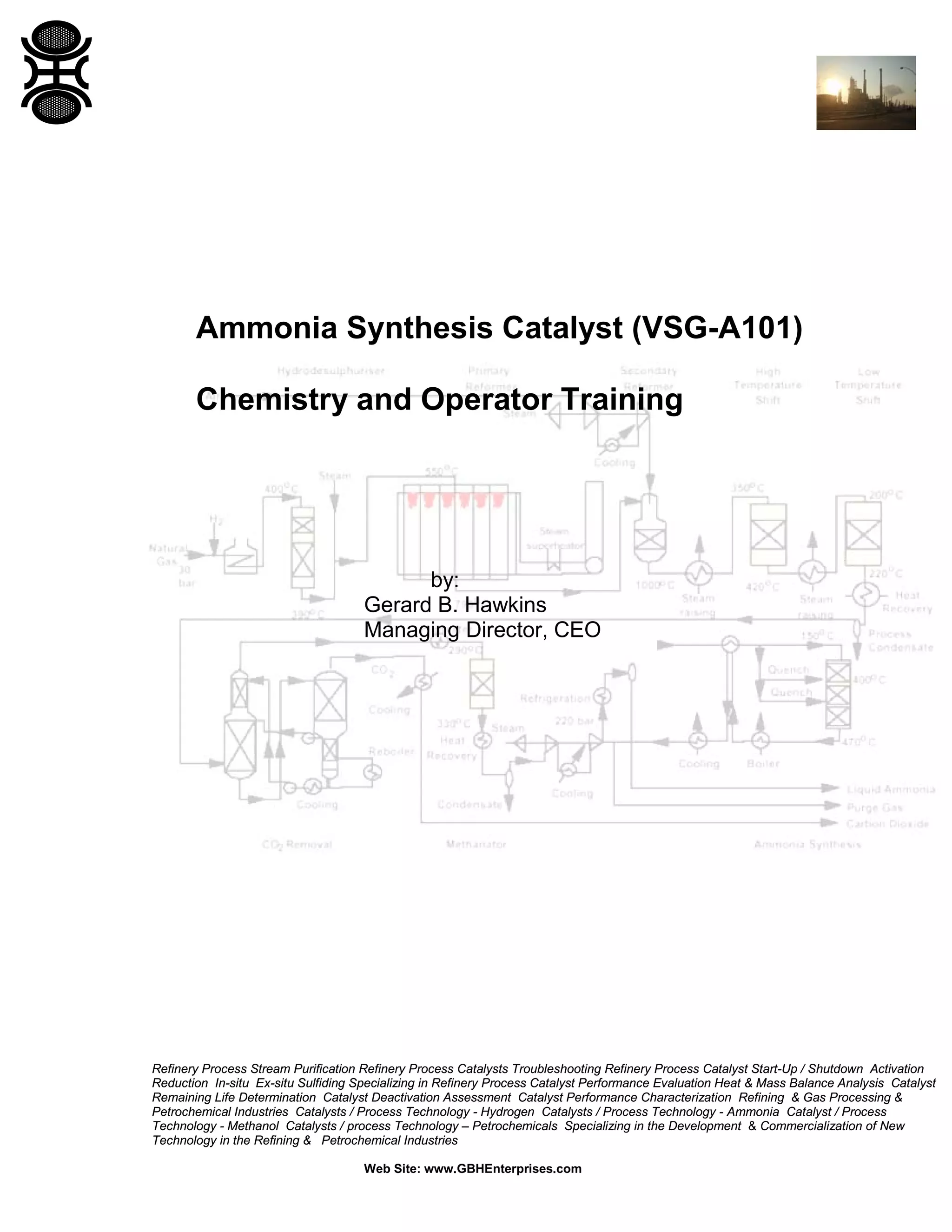 1) Ammonia synthesis catalysts are typically based on magnetite that is reduced to form a porous iron structure. Promoters like alumina and potash boost activity and stability.