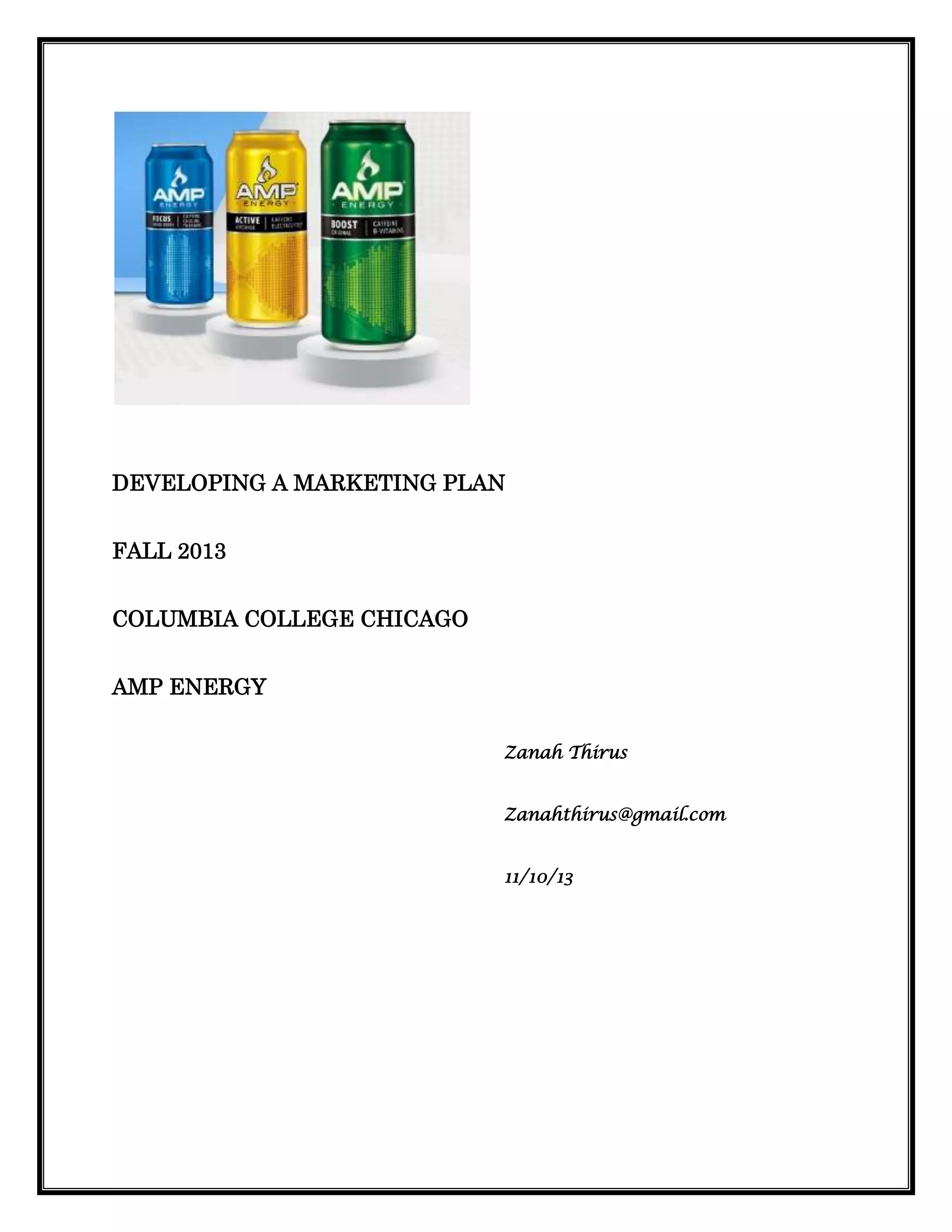 PepsiCo launched Amp Energy in 2001 to compete in the growing energy drink market but sales have declined, dropping Amp to 5th place behind Red Bull, Monster, Rockstar, and NOS. To revitalize the brand, PepsiCo eliminated all 15 flavors of Amp and reinvented it with 3 new flavors and formulations. This marketing plan outlines Amp's target markets, competitive analysis of top energy drinks, and new media strategy to reposition Amp and boost sales among its core consumers of families and young professionals.