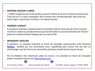 Es proposen activitats complementàries coincidint amb les hores fora de l’horari escolar