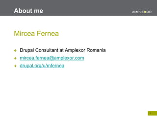 Mircea Fernea will give a presentation on setting up a multilingual Drupal site for the European Year of Development 2015 project. The site was built with Drupal and included 23 languages with content contributed by over 200 partners. The technical design involved modules for content translation, taxonomy translation, language switching, and search to support contributions and content in multiple languages. Challenges included language fallback behavior and translating forms and webforms across languages.