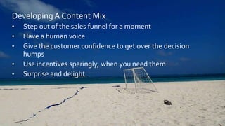 The document discusses content-first strategies aimed at engaging a devoted audience, highlighting the importance of balancing transactional and relationship-driven approaches. It emphasizes the need for informative, transparent, and authoritative content that resonates with users' needs, driving confidence in their decisions. Overall, it underscores the significance of creating effective content to enhance brand perception and customer loyalty.