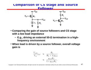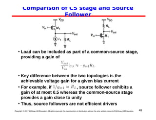 Output resistance Large (≈ 50 K) High (≈ 500 K) Low (50-1000 KΩ)