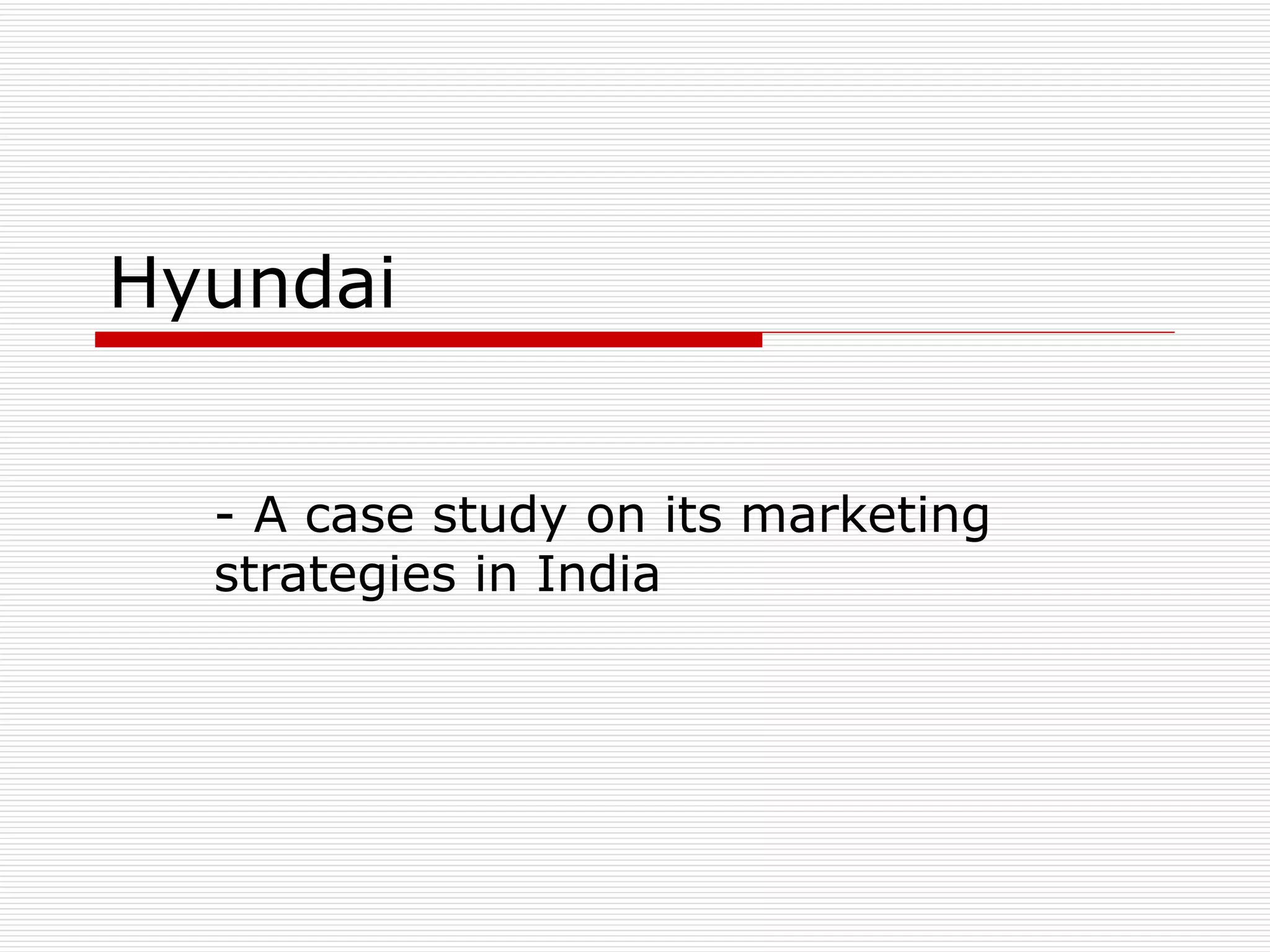 Hyundai entered the Indian car market in 1996 by establishing a manufacturing plant in Chennai and launching its first car, the Santro, a small B segment car. The Santro was priced lower than its competitors and sold over 75,000 units in its first year, making Hyundai the second largest carmaker in India behind Maruti Suzuki. Hyundai further diversified its lineup with the launch of the Accent sedan in the C segment. Through focused market research, competitive pricing, and celebrity endorsements in advertising, Hyundai was able to successfully position itself in the Indian market and differentiate its vehicles from other brands. Hyundai has continued expanding its presence in India with newer models across different