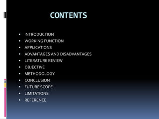The document discusses the development of an automatic braking system guided by ultrasonic sensors to enhance vehicle safety by preventing accidents due to driver inattention. It covers the system's working mechanism, advantages and disadvantages, methodology for implementation, and future improvements such as enhanced obstacle detection. The project aims to provide pre-crash safety and improve the response time for braking in vehicles.