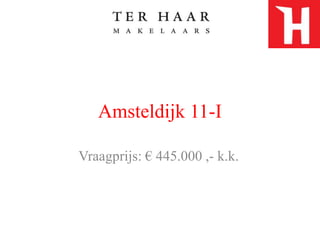 Amsteldijk 11-IAmsterdamVraagprijs: €449.000,- k.k. Ca. 85 m2Toplocatie! Aan de Amstel, op de grens van Oud-Zuid en Centrum Veel lichtinval Hardhouten vloerHoge plafonds (ca. 2,90m)Balkon met verwarmingselementVoor meer info bel 020 573 60 00 / info@terhaar.nu / www.terhaar.nu