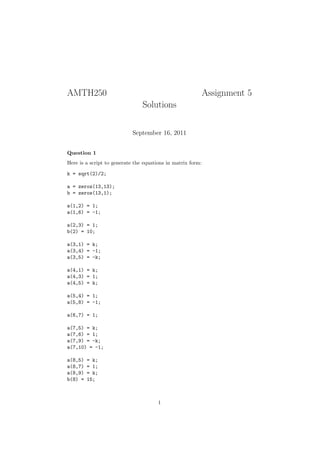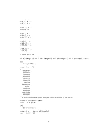 1) The matrix and vector representations of a system of linear equations. It finds the numerical solution and compares it to the exact solution.