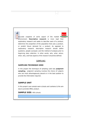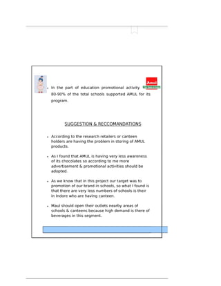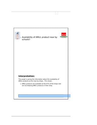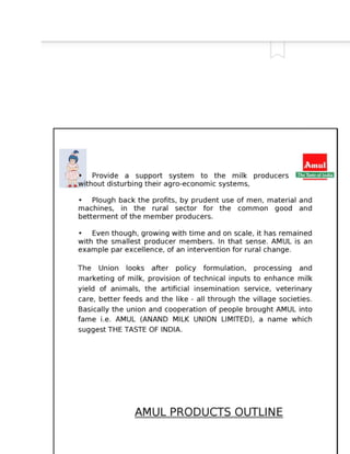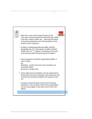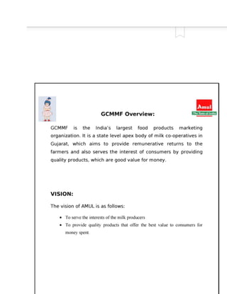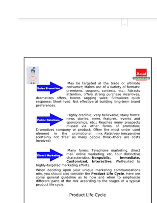 The document discusses market segmentation, targeting, and positioning strategies for Amul butter. It explains that Amul segments the market based on identifying prime customer groups that account for most sales. It targets segments that are homogeneous, measurable, accessible, and large enough to be profitable. Amul has positioned itself as a family brand with the tagline "Taste of India" and focuses on emotional connections while providing good quality products at reasonable prices across India.
