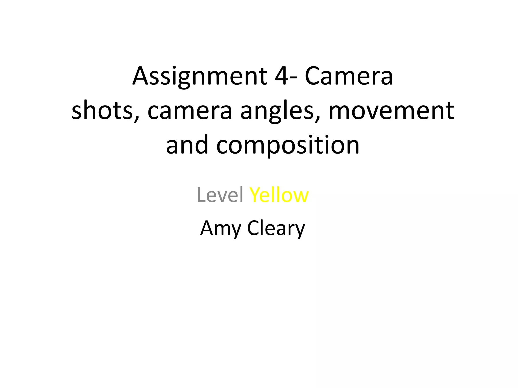 This document provides information on different types of camera shots, angles, movements, and compositional techniques used in filmmaking. It discusses various shot sizes like establishing shots, long shots, and close-ups. It also covers camera angles such as low, high, and canted shots. Common camera movements like pans, tilts, tracks, and zooms are explained. Finally, the document discusses compositional elements including balance, depth of field, symmetry, and the rule of thirds.