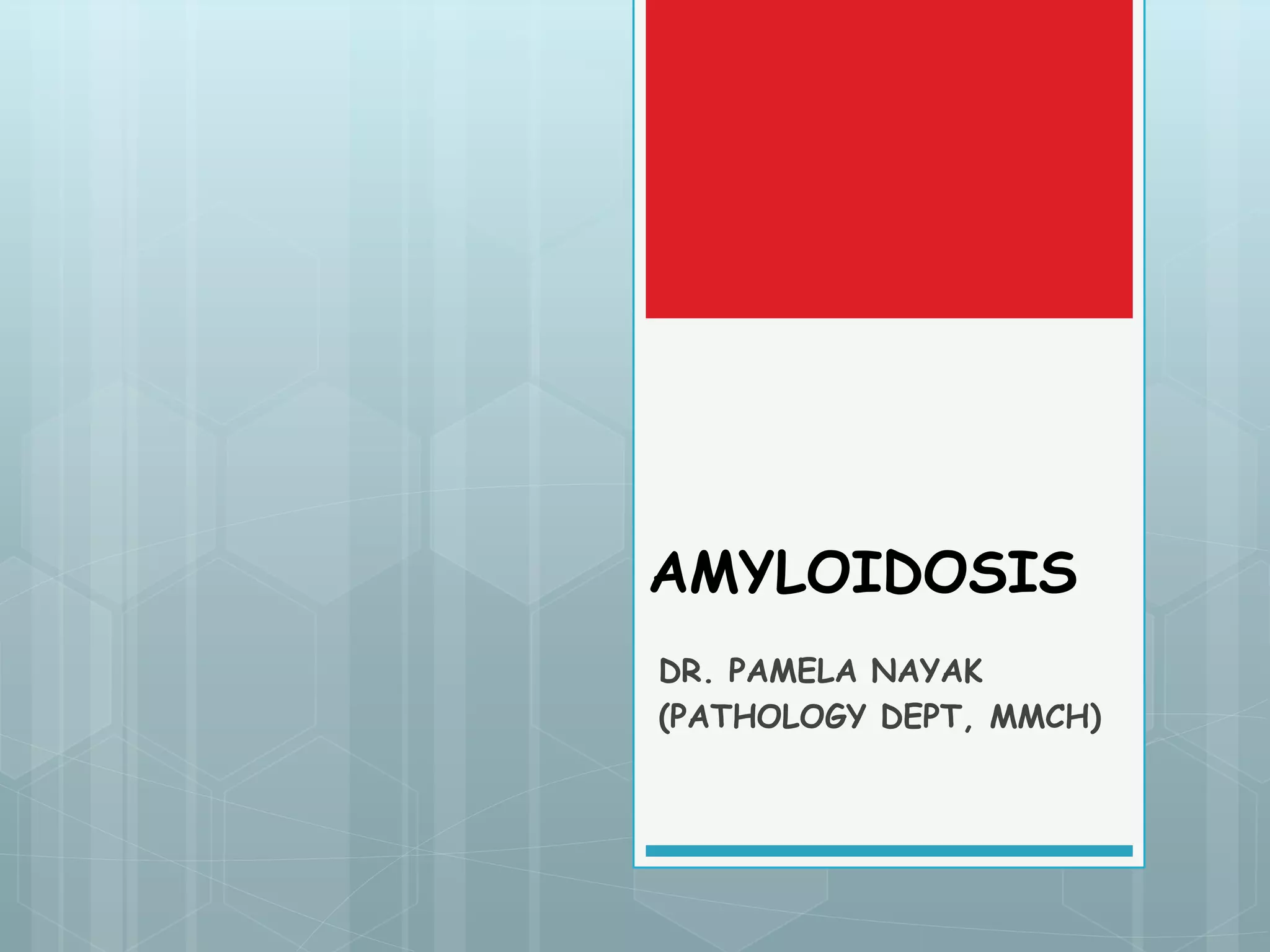 This document provides an overview of amyloidosis, including: