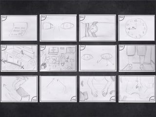 The document provides notes from research on short time-based media works. It examines characteristics of two 15-second films found on Vimeo and YouTube, such as shot length, number of cuts, camera work, and use of sound. Key elements for 15-20 second films are identified as immediate understanding through camera movements, focus, framing and use of diegetic and non-diegetic sound. Examples of potential story ideas for a 15-second film are provided, such as making a cup of tea, travelling to college, and tidying a bedroom within a tight timeframe.