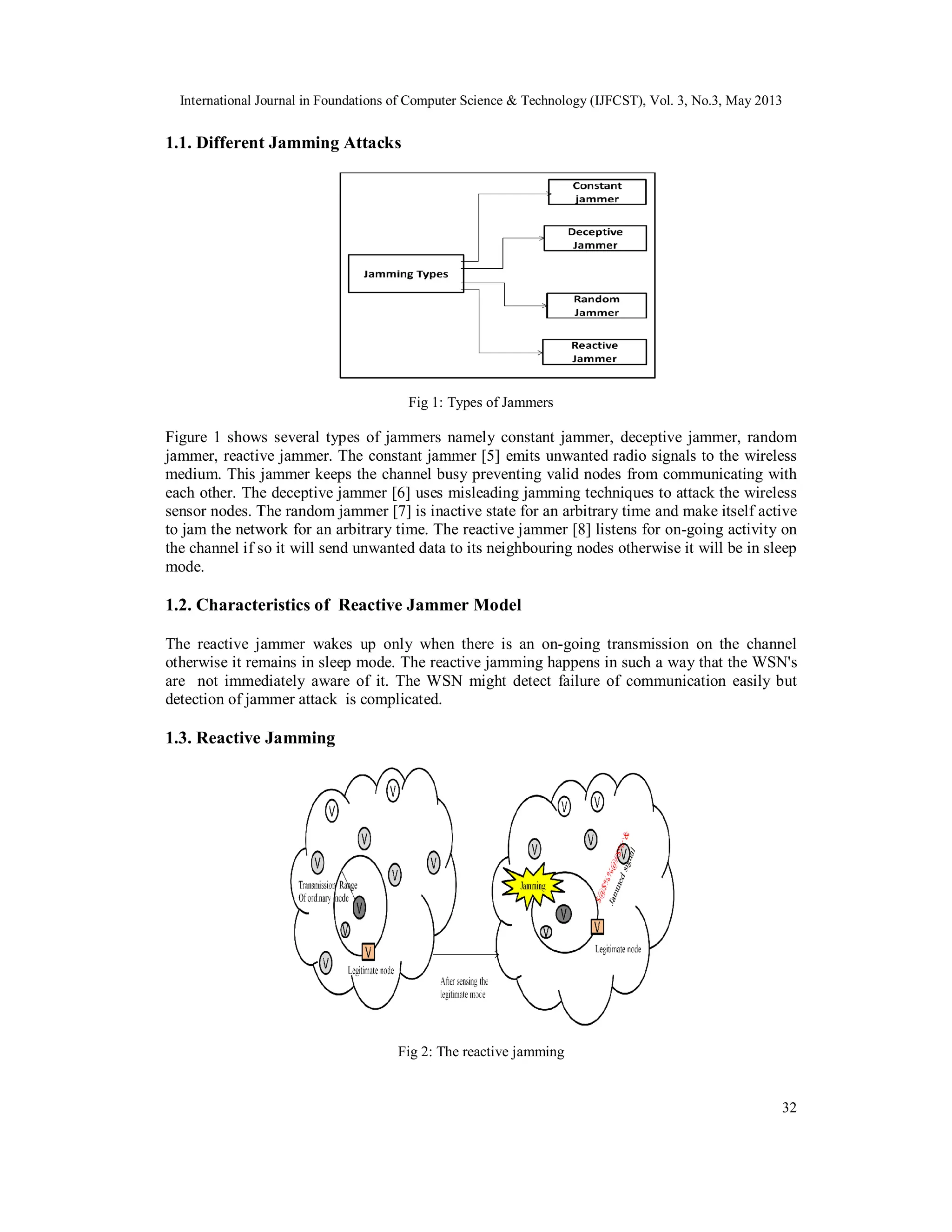 corruption of packets by reactive jammers. A number of defence techniques have been proposed in recent