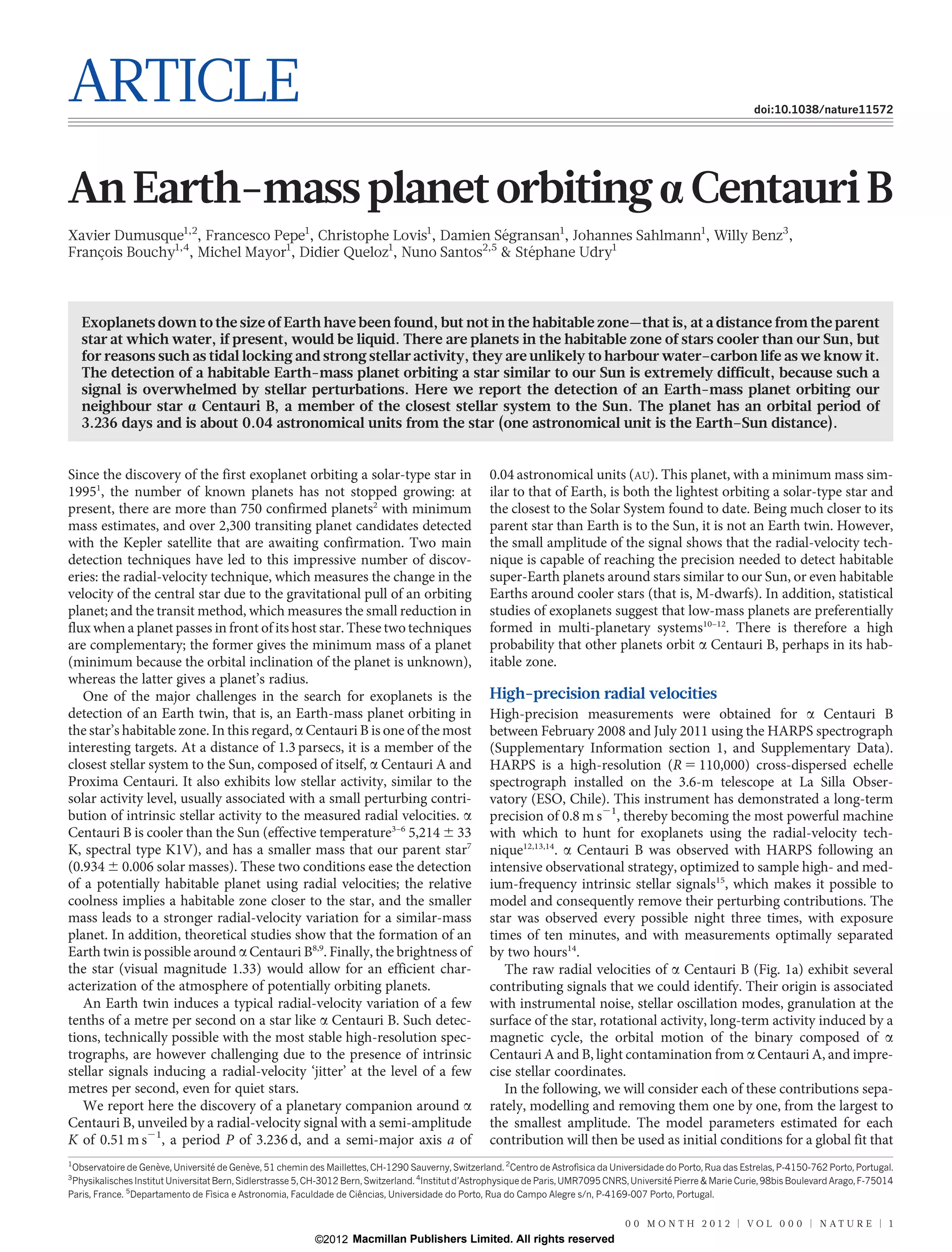 1) Researchers detected an Earth-mass planet orbiting the star Alpha Centauri B.
