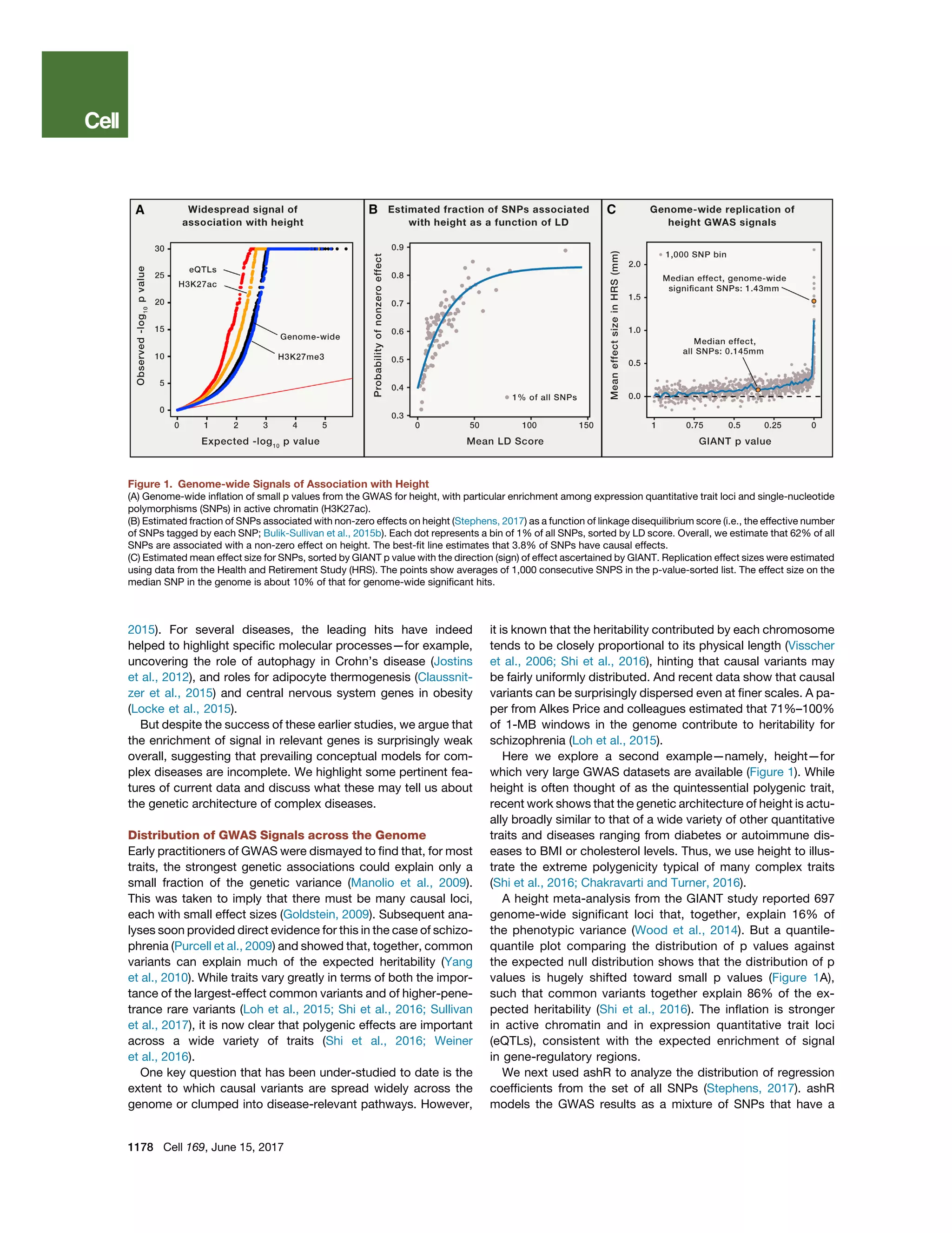 This document discusses the omnigenic model of complex traits, proposing that genetic variation contributing to diseases is widely spread across the genome rather than concentrated in specific pathways. It highlights that both common and rare variants impact heritability significantly, with a notable shift in understanding due to genome-wide association studies (GWAS) revealing that most significant associations come from noncoding regions affecting gene regulation. The findings emphasize that a large number of causal variants with small effect sizes exist throughout the genome, challenging traditional views of genetic architecture in complex diseases.