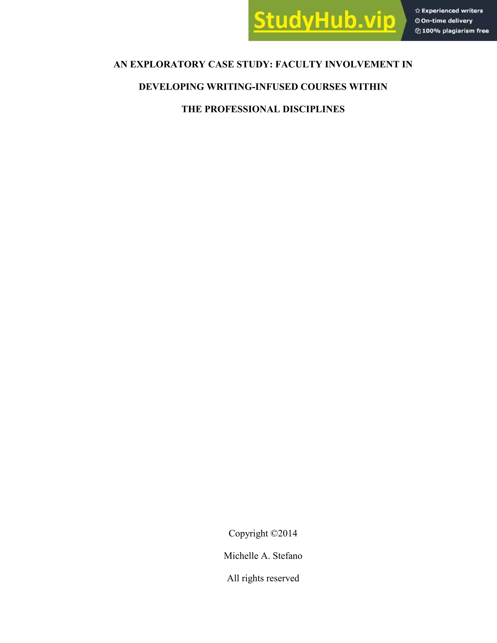 This exploratory case study examined effective methods for faculty without formal writing education to implement a writing-infused curriculum across disciplines. There is a need for this due to gaps in past writing-across-the-curriculum initiatives and students' lack of writing proficiency. While almost all college courses require writing, instructors outside English often have no composition training. The study gathered input from instructors assessing writing in discipline-specific courses and explored current teaching strategies. It addressed gaps in research on writing initiatives at non-traditional universities. The theoretical framework of "teacher-learner community" informed the study, which involved a qualitative survey, classroom observations, and a focus group to identify strategies for faculty to assess student writing without expertise in