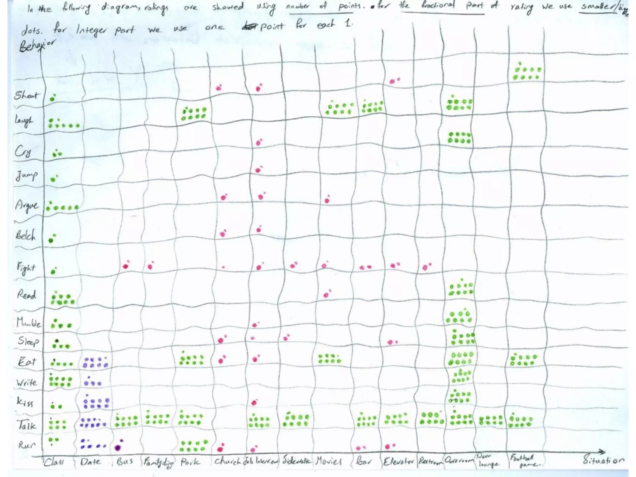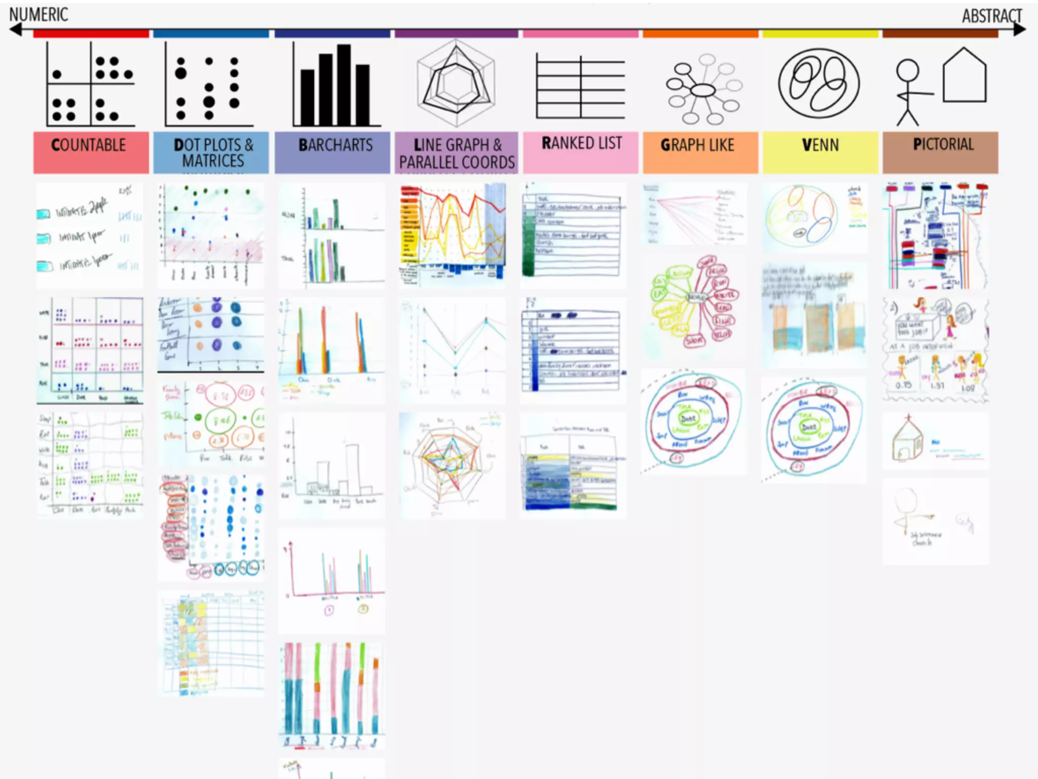 The document describes an exploratory study on data sketching for visual representation. Researchers conducted sessions where participants were asked to sketch representations of behavior-situation data on paper in any way they wished. Participants created a variety of representations ranging from numeric plots and matrices to more abstract pictorial designs. Analysis of the 35 sketches created a continuum from more numerically-focused and countable designs to more abstract visualizations. Common representation types included dot plots, matrices, bar charts, line graphs and parallel coordinates for more data-driven sketches and pictorial, graph-like and ranked list designs for more abstract sketches.