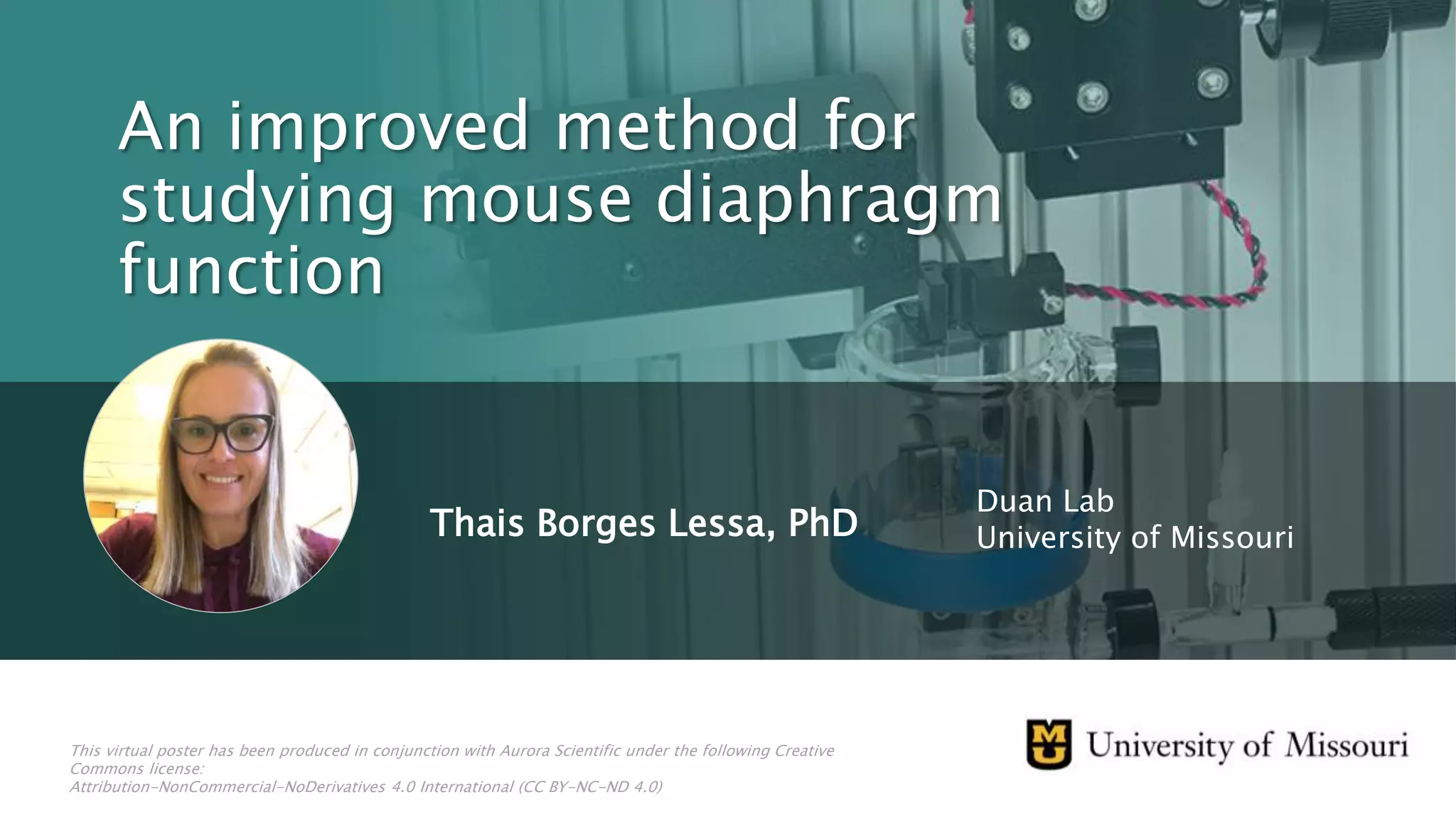 This document presents an improved method for studying mouse diaphragm function, highlighting a new clamp design for evaluating diaphragm muscle performance compared to traditional suture methods. The study aims to provide detailed information on the clamp system and its utility in preclinical studies, demonstrating its superiority in detecting diaphragm function deficits. Acknowledgments are given to various funding bodies and contributors to the research.