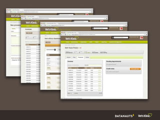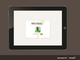 The document outlines Jenny Philp and Peter Osborne's experiences with a bespoke web-based practice management system (PMS) used at a new veterinary practice aimed at revolutionizing pet care. It highlights features such as online booking, flexible pricing, and a real-time pet log, all designed to enhance customer service and streamline administrative processes. Challenges encountered include the need for flexibility in budget and operations, while future directions focus on leveraging collected data for business insights and adapting to changing web access patterns.