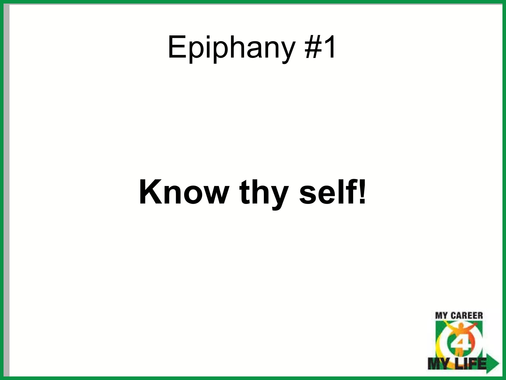 The document outlines nine epiphanies for those seeking a career change after age 40: know thyself, network extensively, find a mentor, understand that identity is defined by more than just a job, repackage your skills for a new career path, embrace mistakes, swallow pride, build supporters, and seek advice. It then provides a four-step process for career change: discover yourself through assessments, explore options through research and networking, analyze financial needs and opportunities, and execute a business plan while networking.