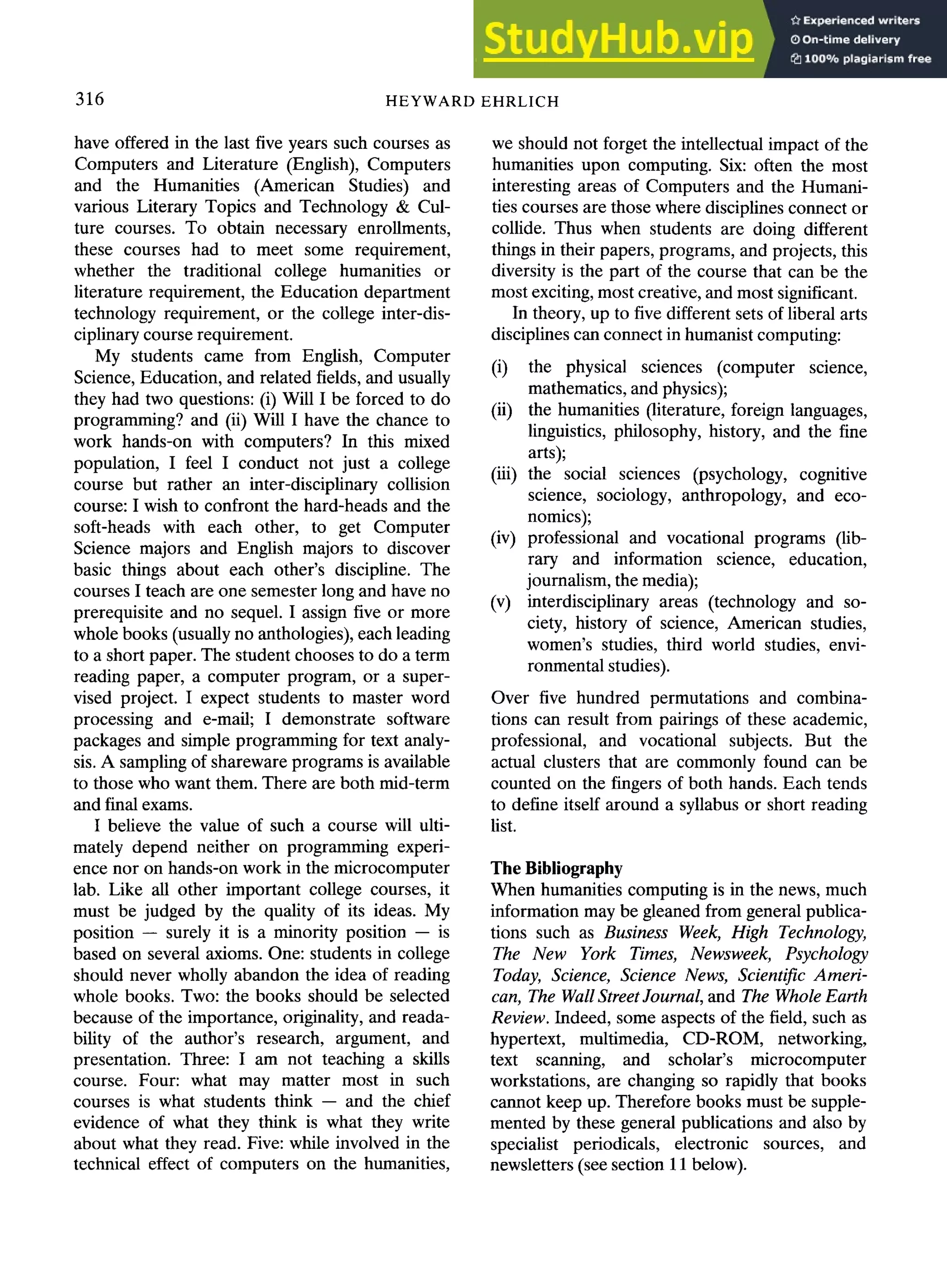 This document provides an interdisciplinary bibliography for computers and the humanities courses. It begins with an introduction describing the author's approach to teaching such courses and some key considerations. The main body consists of annotated bibliographies grouped into 11 sections on various topics relevant to computers and the humanities, such as overviews, introductions, human languages, literary analysis, artificial intelligence, debates on social issues, and more. The annotations evaluate and describe the books to suggest course materials and readings. The bibliography aims to support interdisciplinary study at the intersection of computing and the humanities.