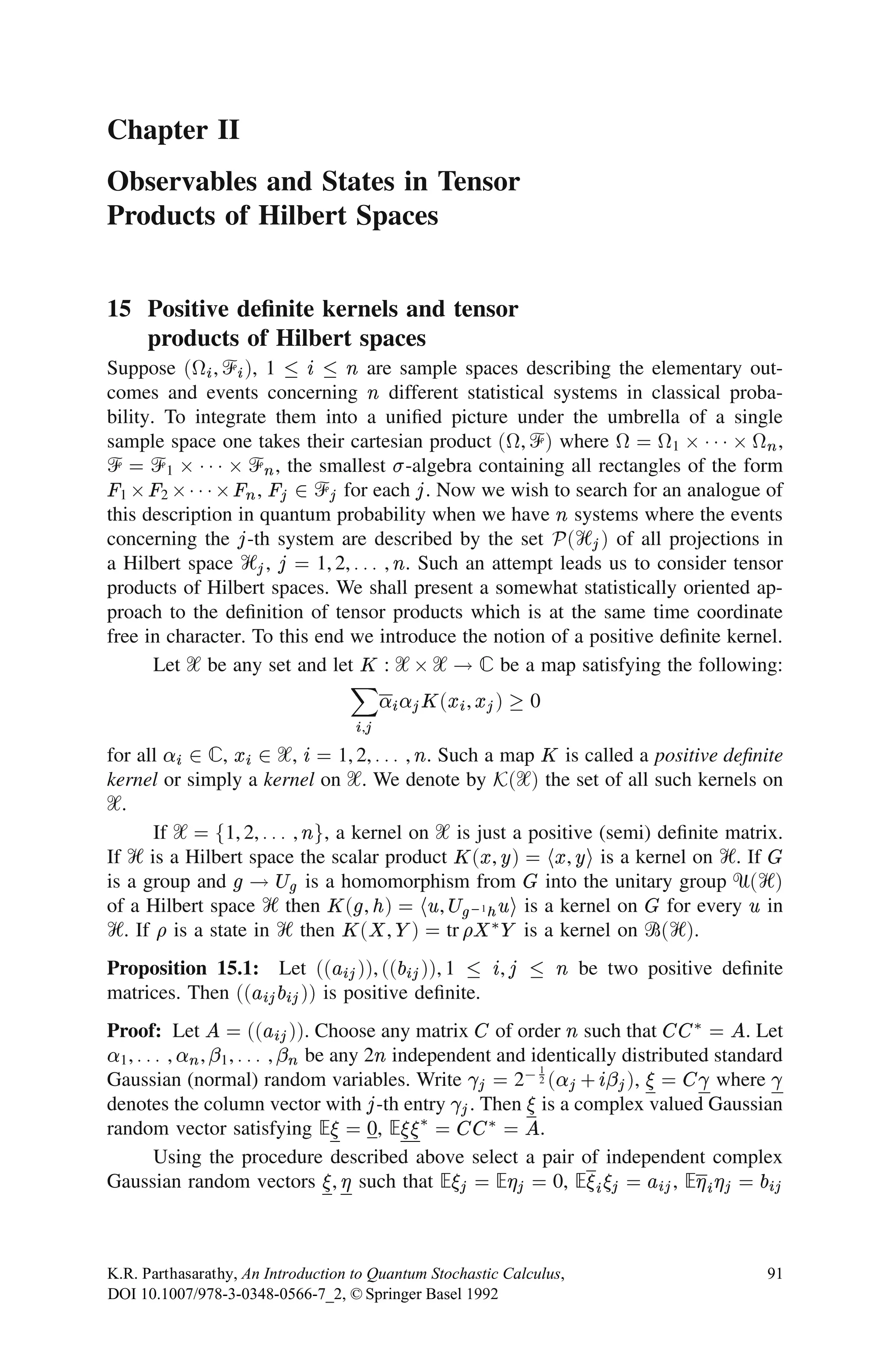 The document discusses tensor products of Hilbert spaces. It defines positive definite kernels on sets and shows how they can be used to define tensor products. Given Hilbert spaces H1, ..., Hn, it constructs a kernel on the cartesian product of the spaces and shows that its Gelfand pair (H,φ) gives a tensor product of the Hilbert spaces. The map φ from the product space into H is multilinear and H is the completion of the algebraic tensor product of the vector spaces H1, ..., Hn.