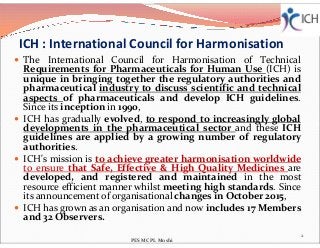 The document outlines the functions and roles of various international health and regulatory organizations, including the International Council for Harmonisation (ICH), World Health Organization (WHO), U.S. Food and Drug Administration (FDA), Medicines and Healthcare Products Regulatory Agency (MHRA), Therapeutic Goods Administration (TGA), Bureau of Indian Standards (BIS), American Society for Testing and Materials (ASTM), International Organization for Standardization (ISO), and Central Drugs Standard Control Organization (CDSCO). Each organization has a distinct mandate in ensuring the safety, efficacy, and quality of healthcare and pharmaceutical products internationally and domestically, focusing on harmonizing regulations and technical requirements. Moreover, these organizations facilitate cooperation among member states and stakeholders to improve public health outcomes and standardize practices globally.