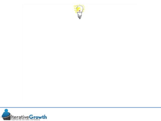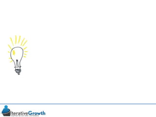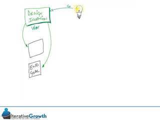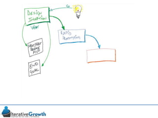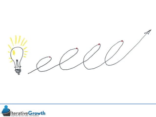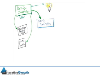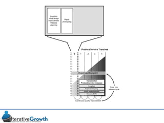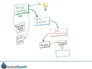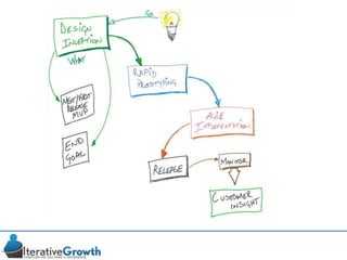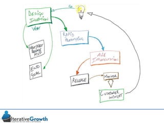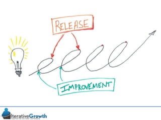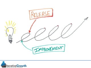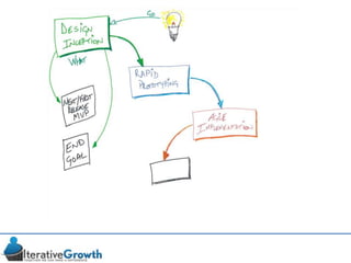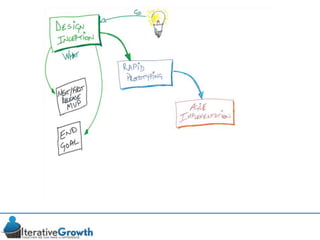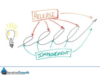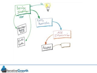 This document discusses an iterative approach to digital product development using agile principles. It advocates taking a product-based rather than project-based approach, with continuous quality improvement and refinement of the product over time based on feedback. Agile practices like having very structured but flexible processes, visual transparency, and failing fast are recommended. While agile has risks if not implemented properly, following principles like minimum viable products and iterative design allows products to be informed by measurement and to evolve as needed.