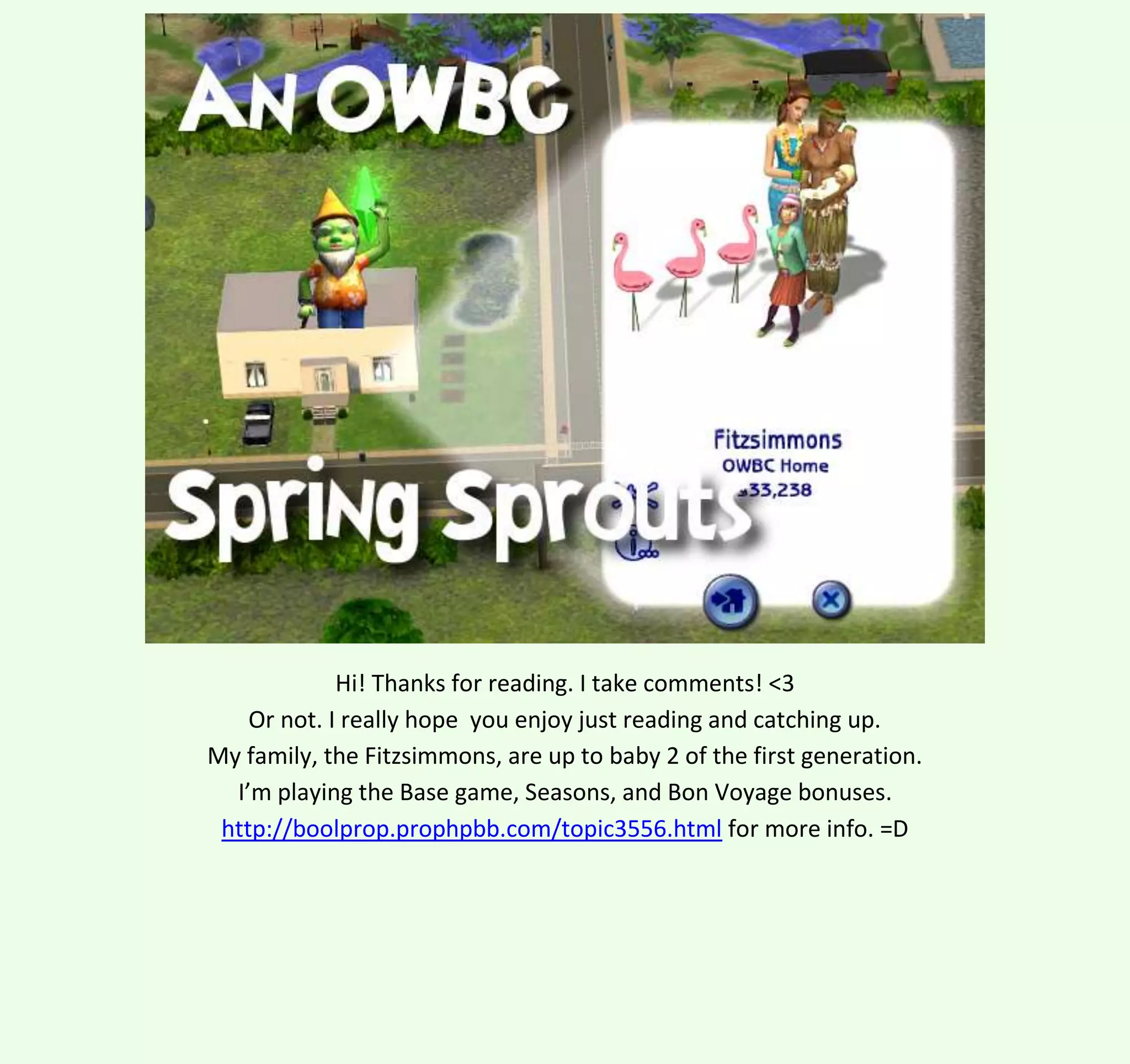 The document is a narrative about a family in the game The Sims, focusing on their experiences as they welcome the second child and navigate various events such as school and birthday parties. It highlights the interactions among the family members, their different personalities, and the challenges faced with parenting and household management. The story ends with the birth of twins, wrapping up the first generation's three required pregnancies.
