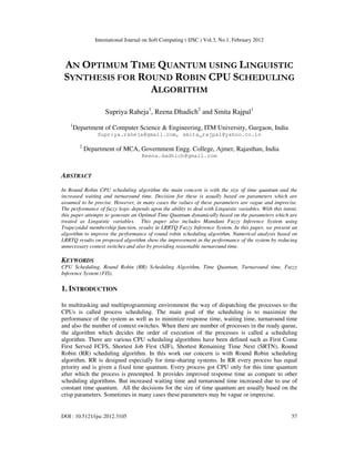 This paper presents a method for optimizing the time quantum in the Round Robin CPU scheduling algorithm using fuzzy logic and linguistic variables to improve system performance. By dynamically adjusting the time quantum based on average burst time and the number of processes, the proposed Mamdani fuzzy inference system (lrrtq) enhances turnaround and waiting times while reducing unnecessary context switches. Numerical analyses demonstrate the effectiveness of the approach compared to fixed time quantum strategies.