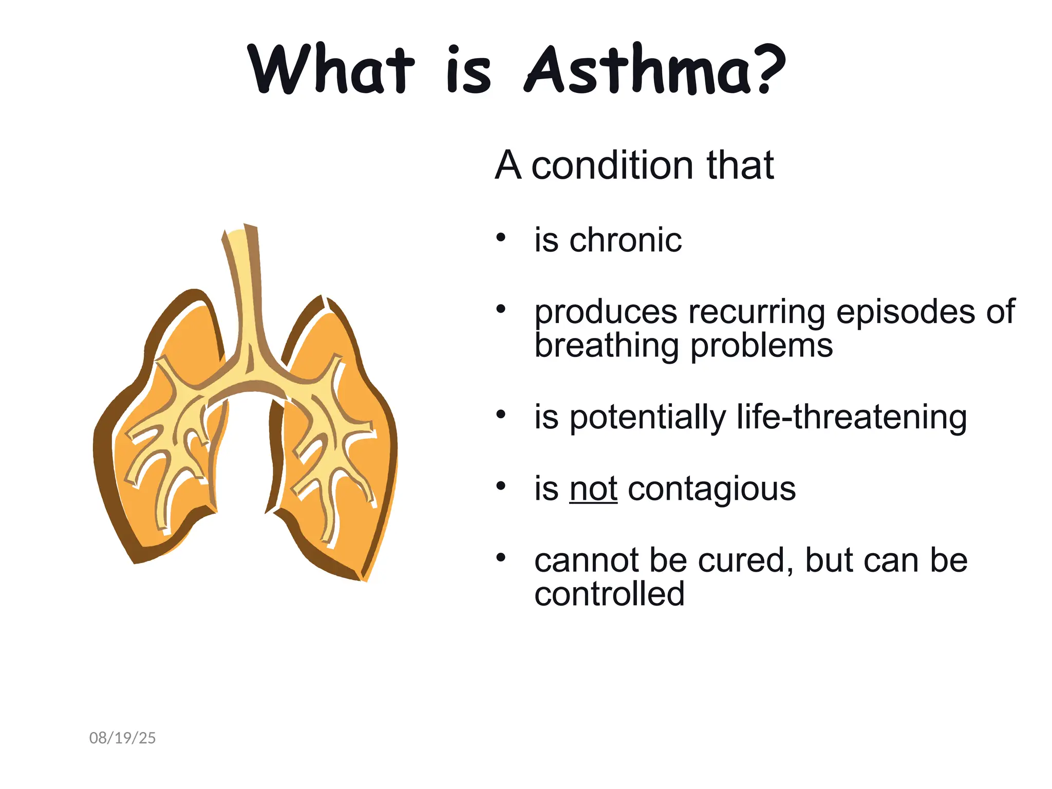 Note for presenter: Some audiences may need a definition for genetic and environmental factors. Genetic factors are things passed down from your parents. Environmental factors are things in the environment around you that may contribute to the development of asthma.